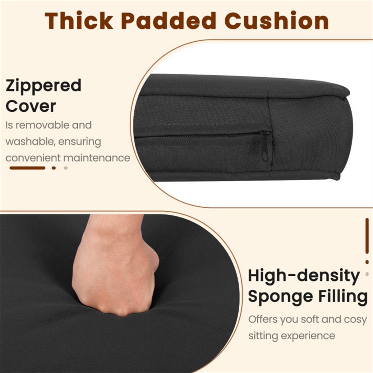 • Comfortable Seating: Chairs include 3-inch thick sponge cushions with removable, washable covers for easy maintenance and comfort.