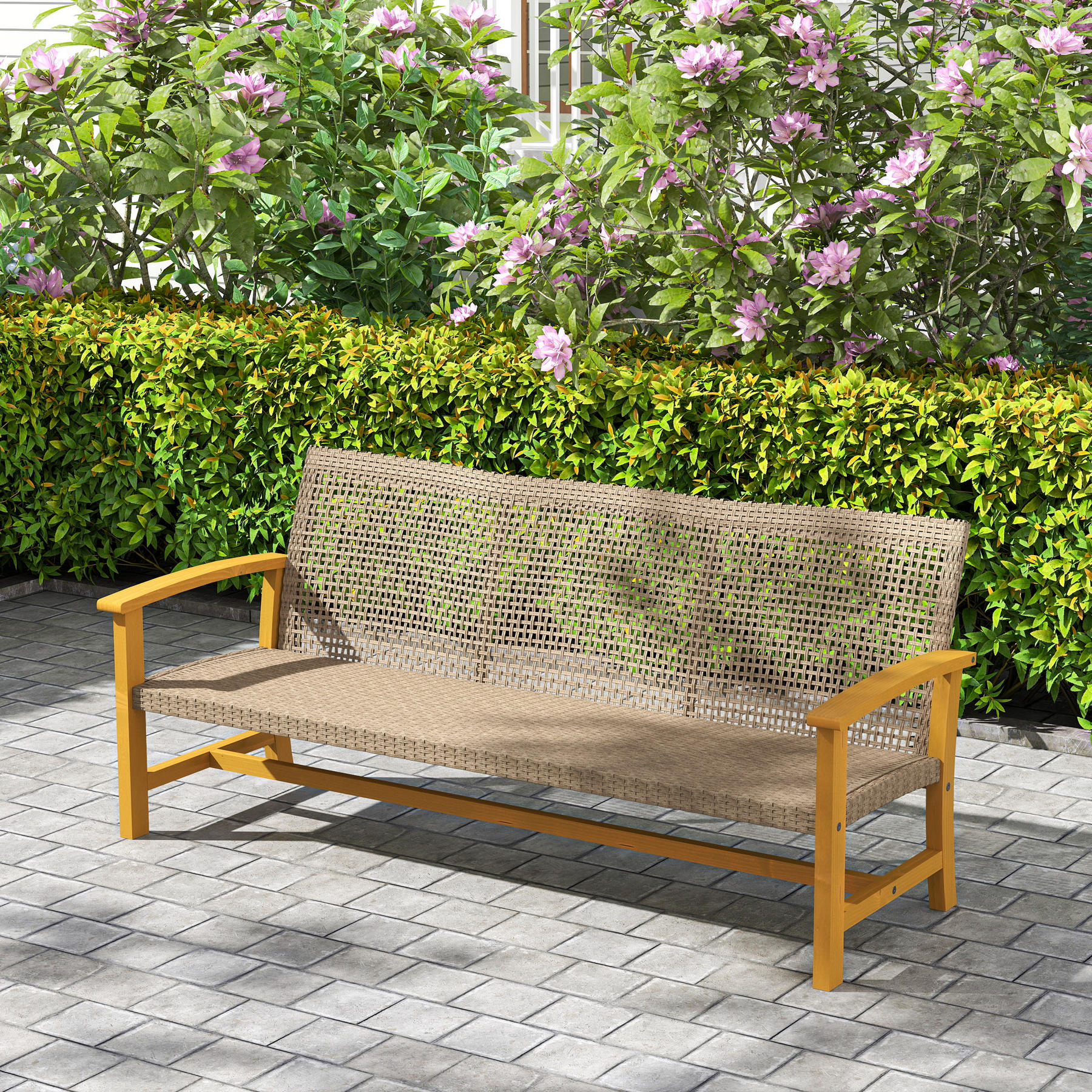 The spacious seat offers room for three adults, while the steel-supported structure delivers dependable strength for long-term outdoor use. Whether placed on a patio, in a garden corner, or on a covered porch, this sofa adds a clean, warm look that works well with modern, rustic, or coastal outdoor dรฉcor.