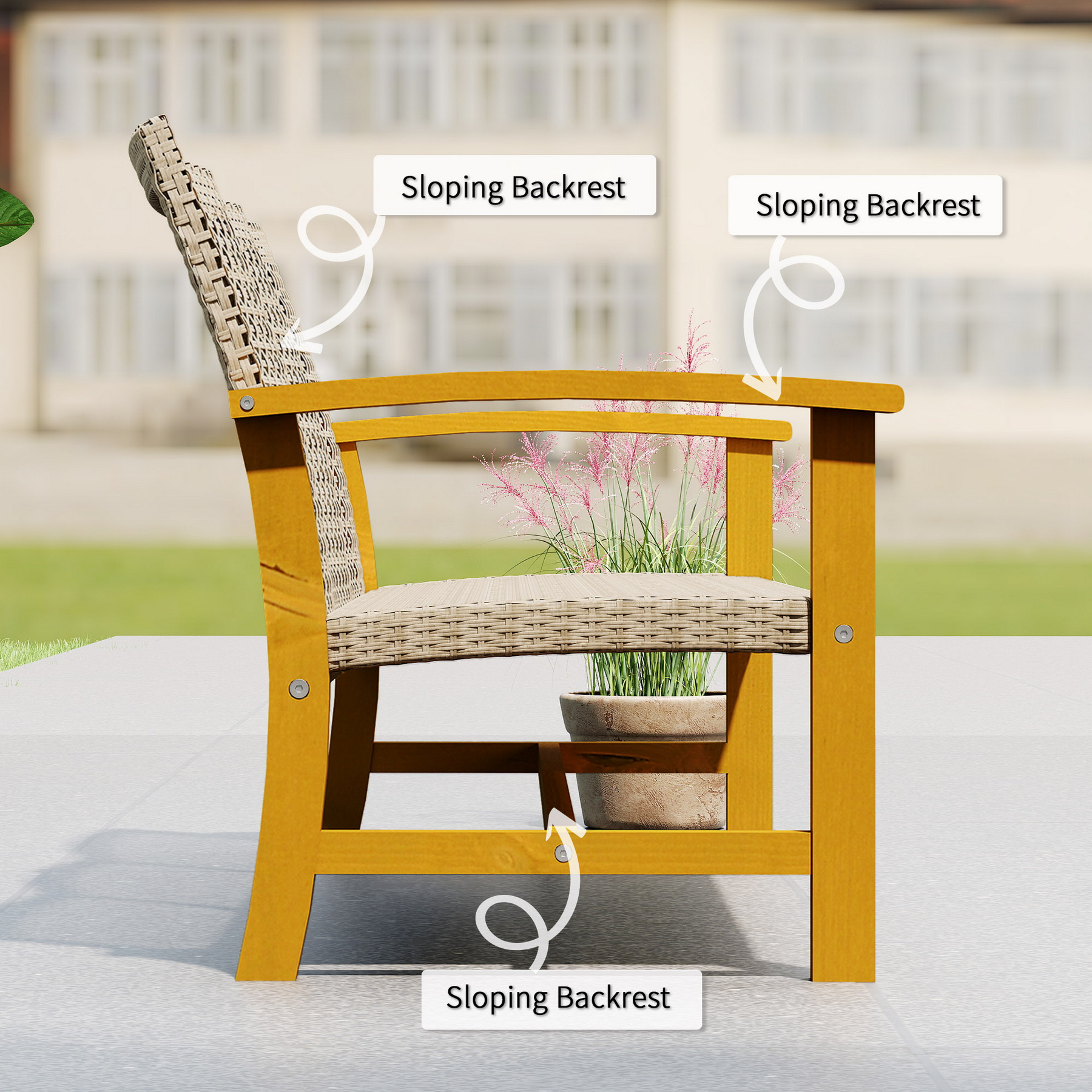 - Materials: PE Wicker, Acacia Wood, Steel