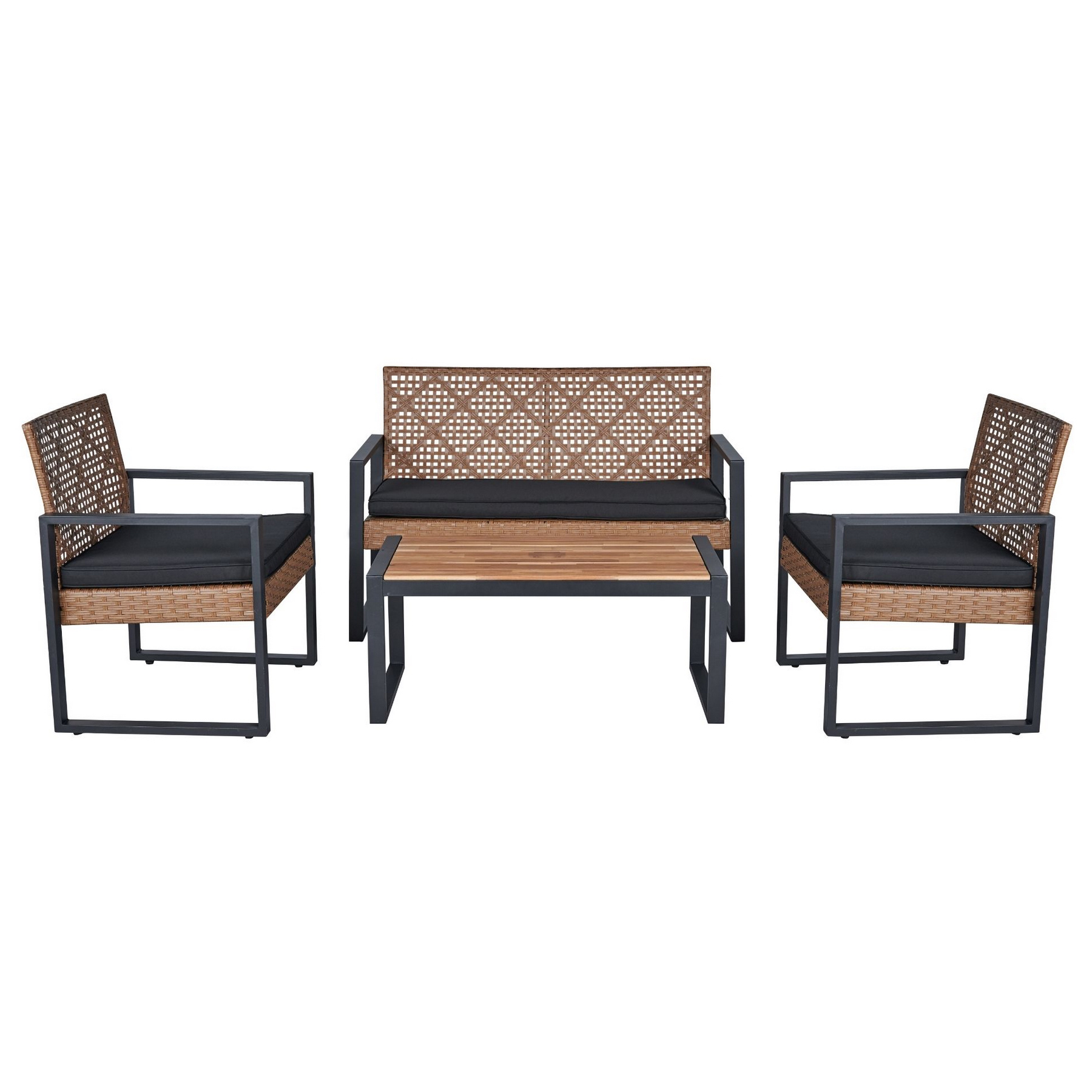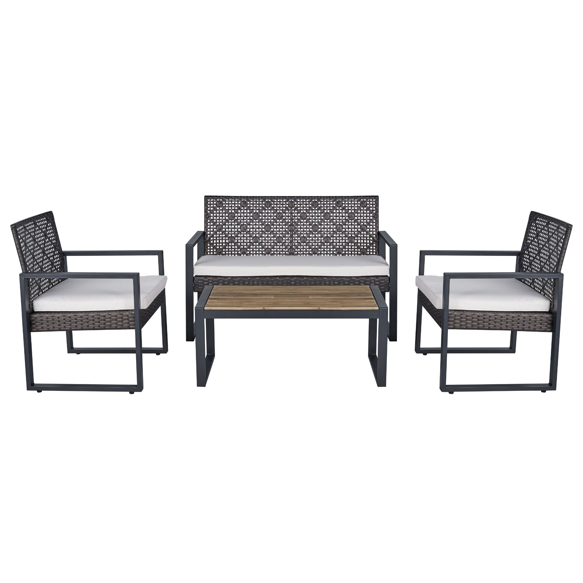 4-Piece Rattan Patio Sectional Set with Acacia Wood Table Top & Cushions (Seats 4)
