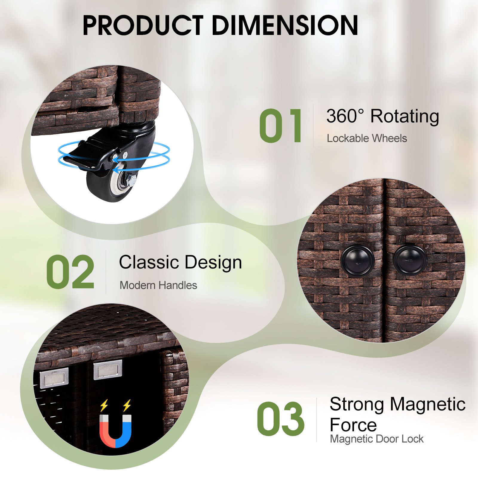 The elegant brown rattan finish and smooth-rolling wheels make it a stylish and practical addition to your patio, backyard, or poolside area.